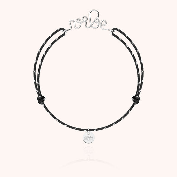 Its black cord woven with reflective White wires captures daylight and shines in the dark, bringing a bright and modern touch to your wrist. This personalized bracelet is designed to accompany you daily, day and night.