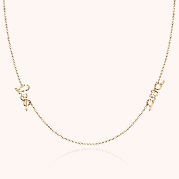 Personalize your Richelieu Duo necklace with two names, a message, or a unique combination of two words. Each letter is shaped by hand from yellow gold filled wire, then mounted on a delicate 45cm chain. A symbolic creation to wear close to the heart or to offer as a precious link between two stories.