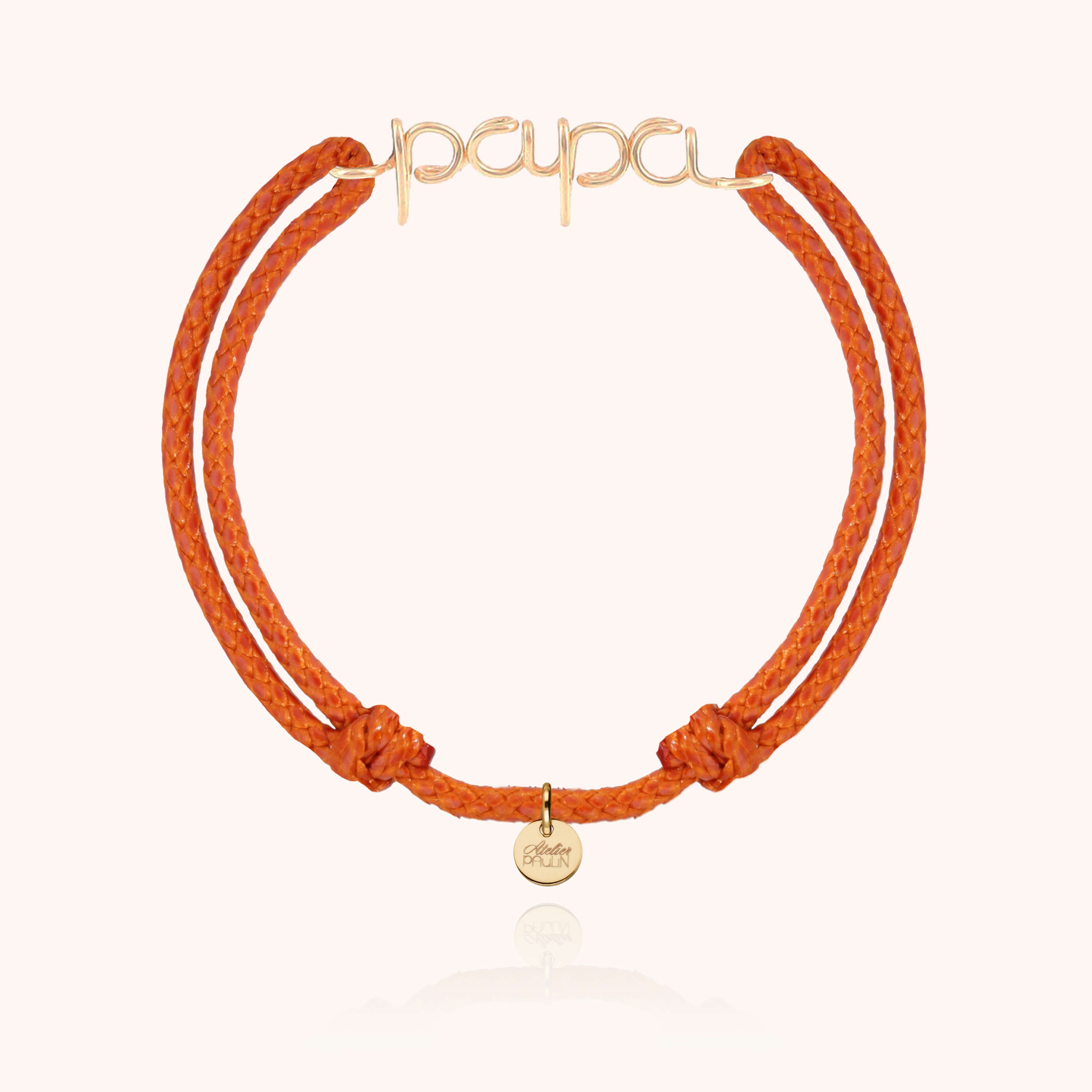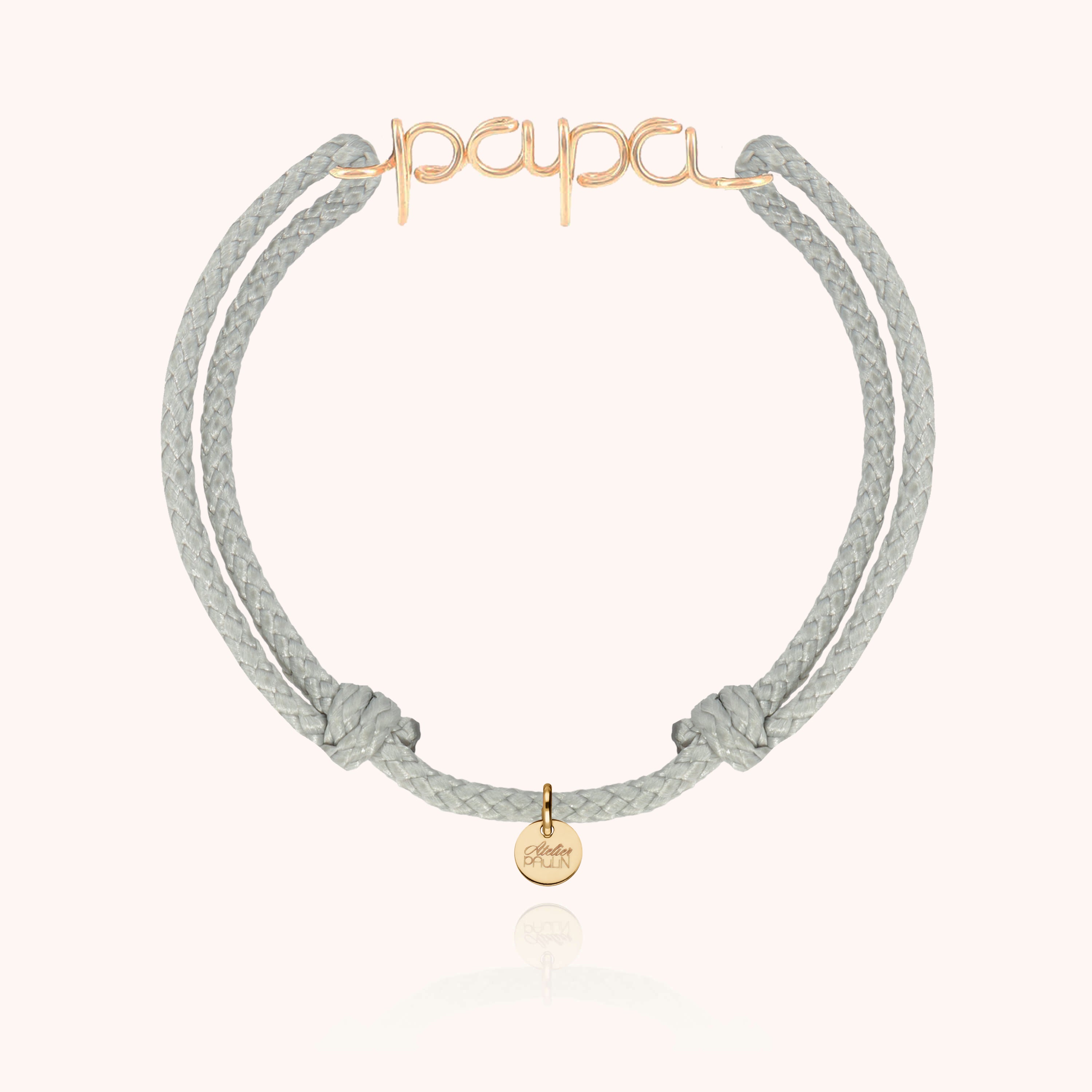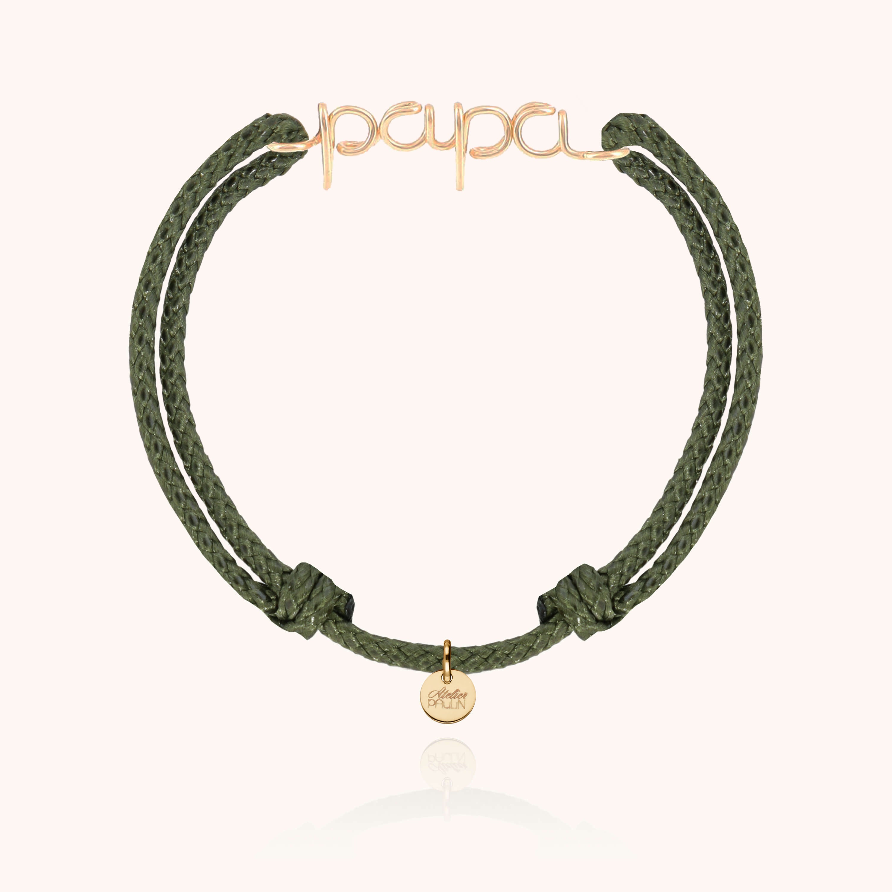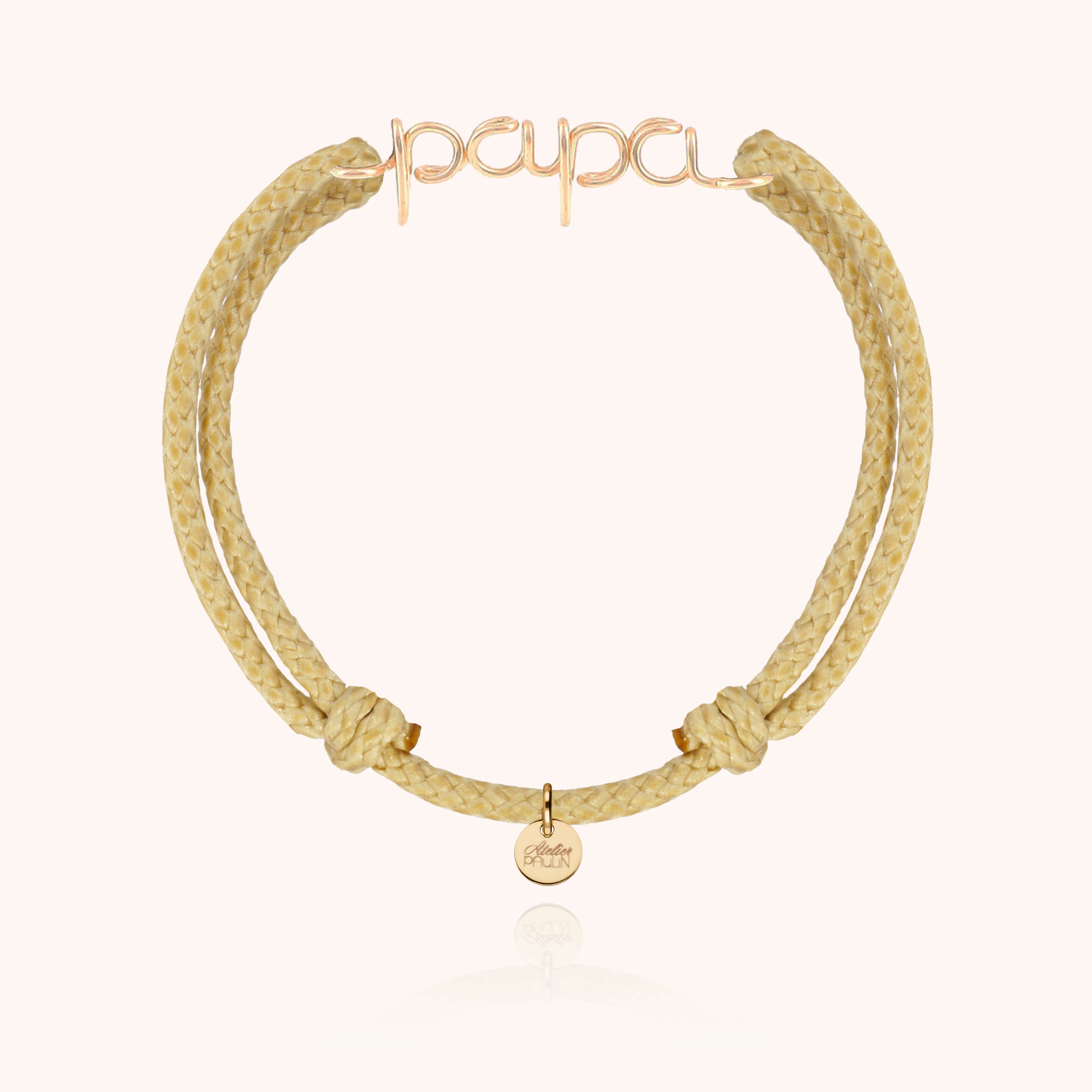The cord bracelet is a piece of jewelry that expresses emotions and symbolizes a bond. Personalized with the word "papa," this men's bracelet is crafted by artisans and mounted on a timeless waxed cord in 14k yellow gold filled wire. A perfect gift idea for Father's Day.