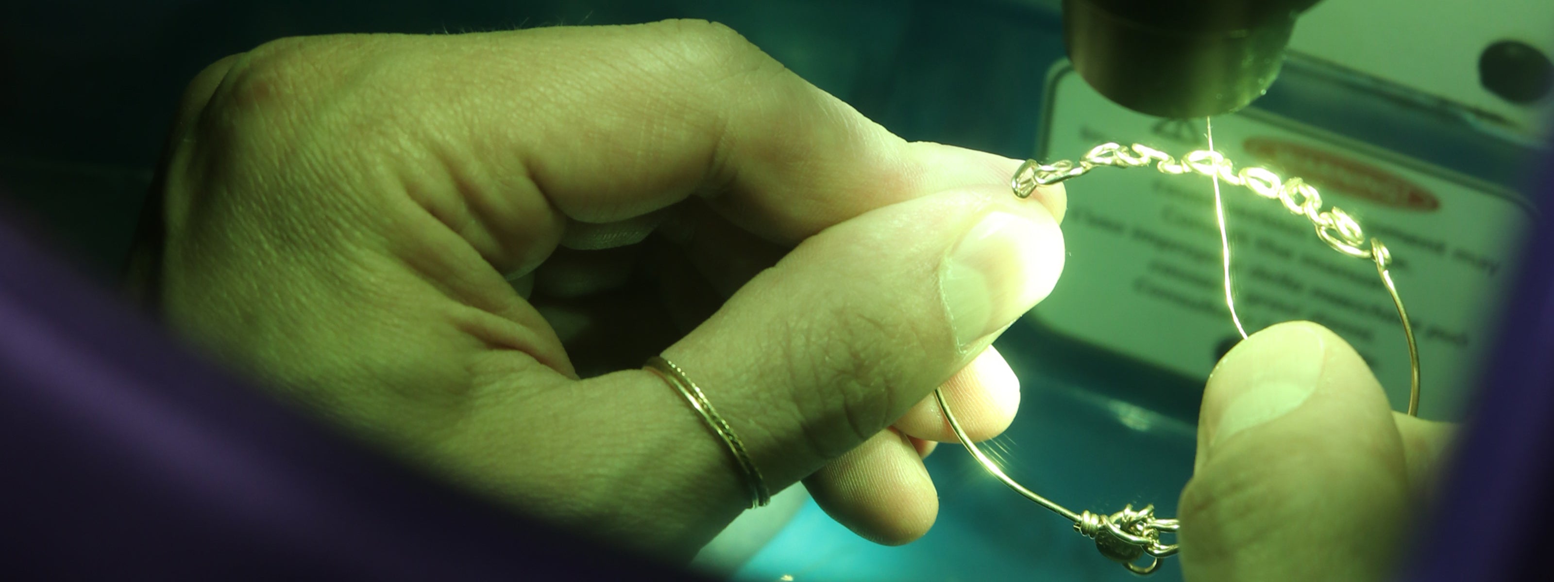 Per garantire una solidità impeccabile, utilizziamo la tecnologia laser per fondere i punti di giunzione in modo totalmente invisibile su Oro 18k, Argento 925 e Gold-filled.