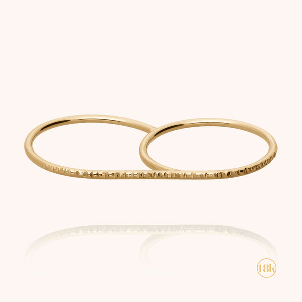 Unico, il doppio anello Artémis scivola sull'indice e sull'anulare. Una linea pura e delicata, modellata e martellata a mano nel nostro Laboratorio.