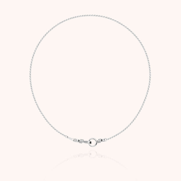 Un pezzo sottile, ma pieno di significato. Questa collana girocollo in argento sterling mette in evidenza la chiusura Attache-moi, portata qui su una catena Rope essenziale. Una creazione artigianale, pensata per essere indossata vicino al cuore e incarnare l'intimo, il legame prezioso, quello che non si spezza mai.
