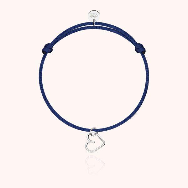 In argento sterling 925, il cuore si illumina di una brillantezza sottile e pura. Modellato a mano su un cordoncino in cotone regolabile, questo braccialetto portafortuna unisce emozione, semplicità ed eleganza.