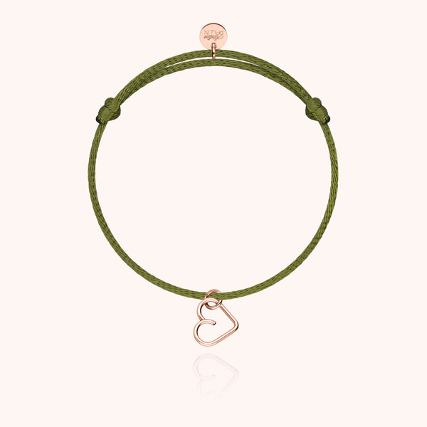 Delicato e romantico, il braccialetto cuore in oro rosa laminato 585/1000 esprime la dolcezza delle emozioni. Ogni ciondolo è modellato a mano e montato su un cordoncino colorato regolabile per un tocco di tenerezza al tuo polso.