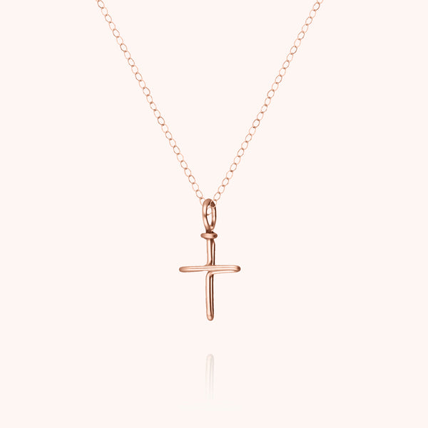 La collana Croce in oro rosa laminato 585/1000 incarna la dolcezza e la luce. Il suo pendente lavorato a mano è un simbolo delicato di fede, ideale per celebrare i momenti importanti con eleganza.