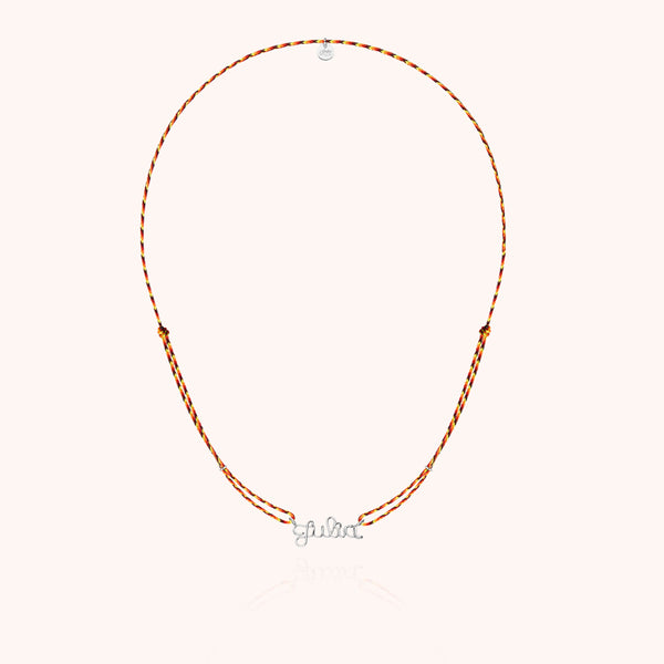 Minimalista e carico di significato, il collier personalizzato in filo d'argento sterling 925 è montato sul cordoncino Slim Knot colorato. Modellato a mano, avvolge il collo con leggerezza e si adatta facilmente. Un gioiello unisex, senza tempo, pensato per raccontare la vostra storia.